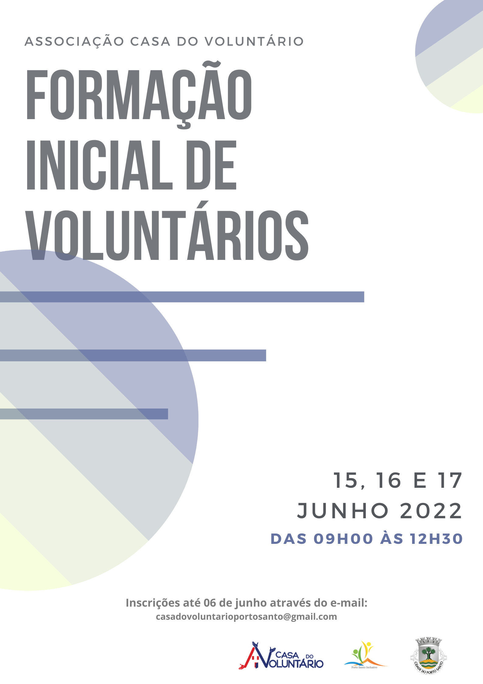 - Formação inicial em voluntariado - Horário Laboral (15,16 e 17 de junho entre as 09h30 e as 12h30).