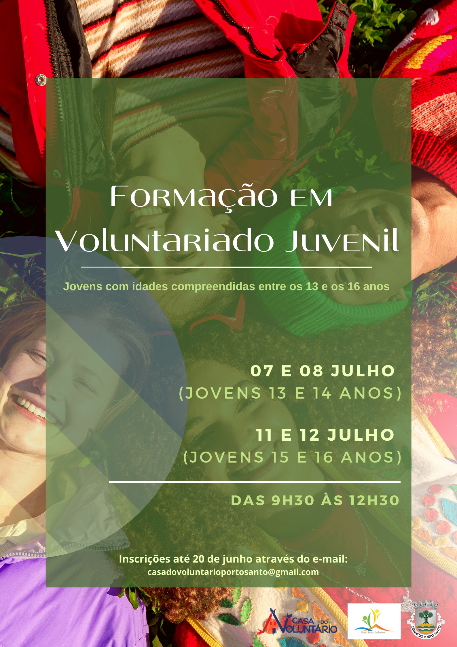- Formação inicial em voluntariado juvenil - jovens entre os 15 - 17 anos (11 e 12 de julho entre as 09h30 - 12h30 e as 14h30-17h00).