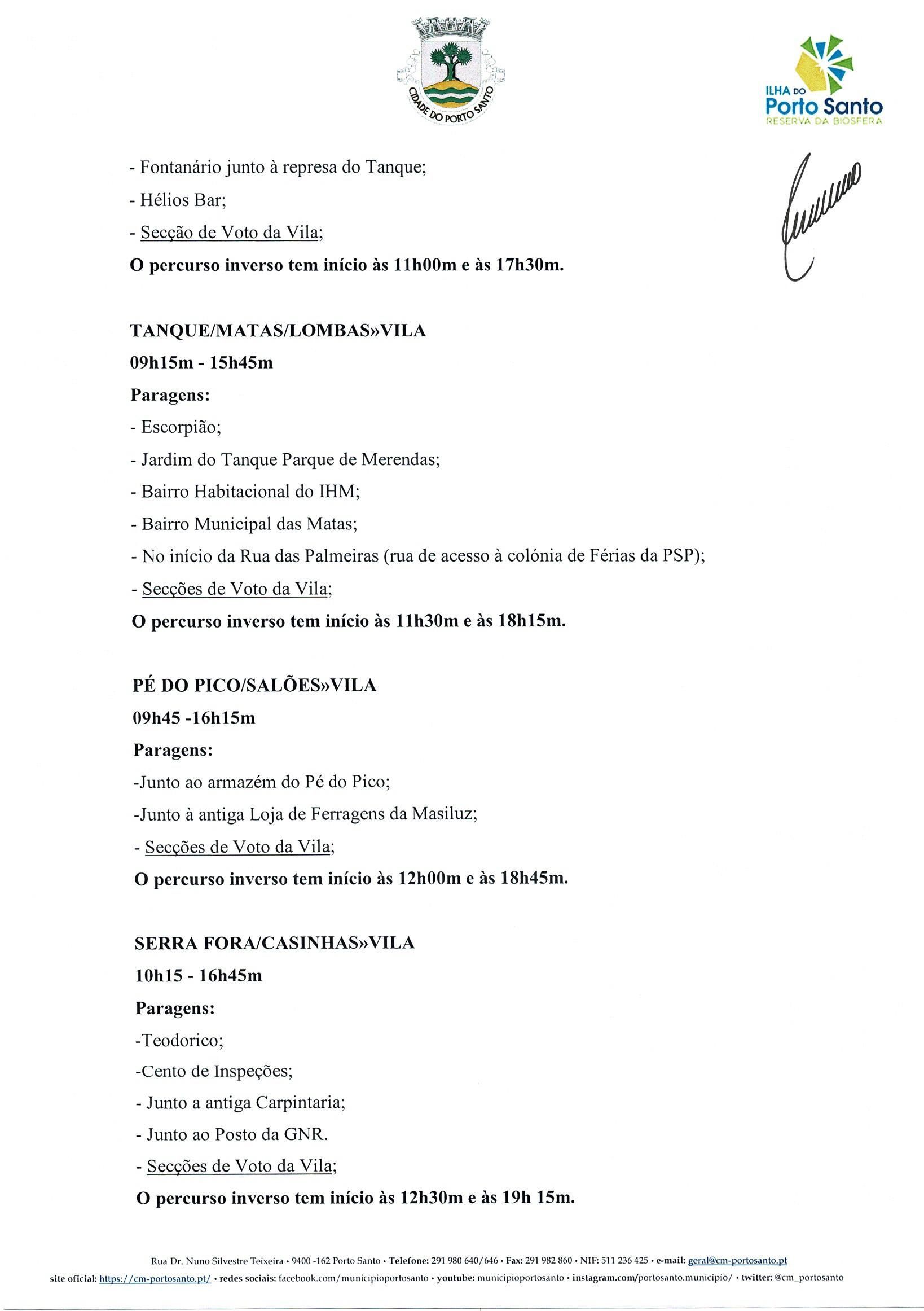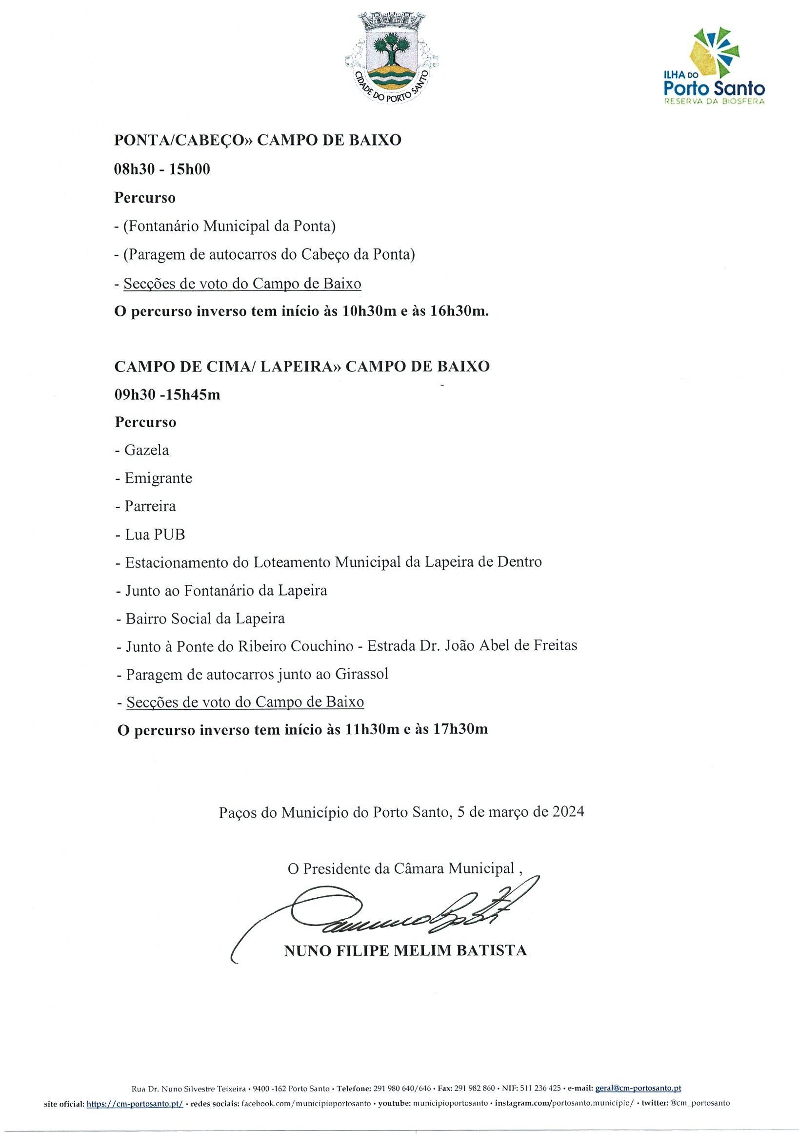 Segue o Edital da Câmara Municipal do Porto Santo com os os Horários dos Transportes Especiais de Eleitores