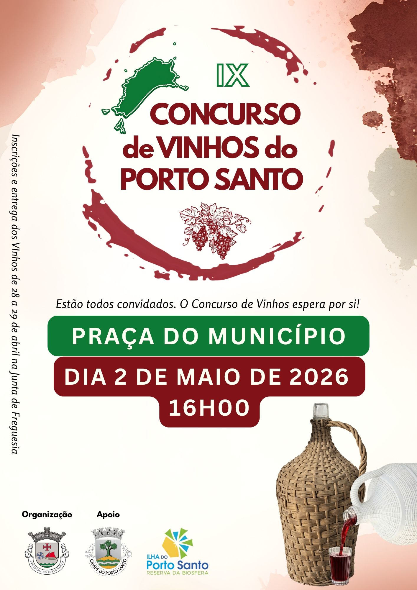 PS: Informamos aos vinicultores que as inscrições e a entrega dos vinhos decorrem de 28 a 29 de abril, na sede da Junta de Freguesia do Porto Santo.