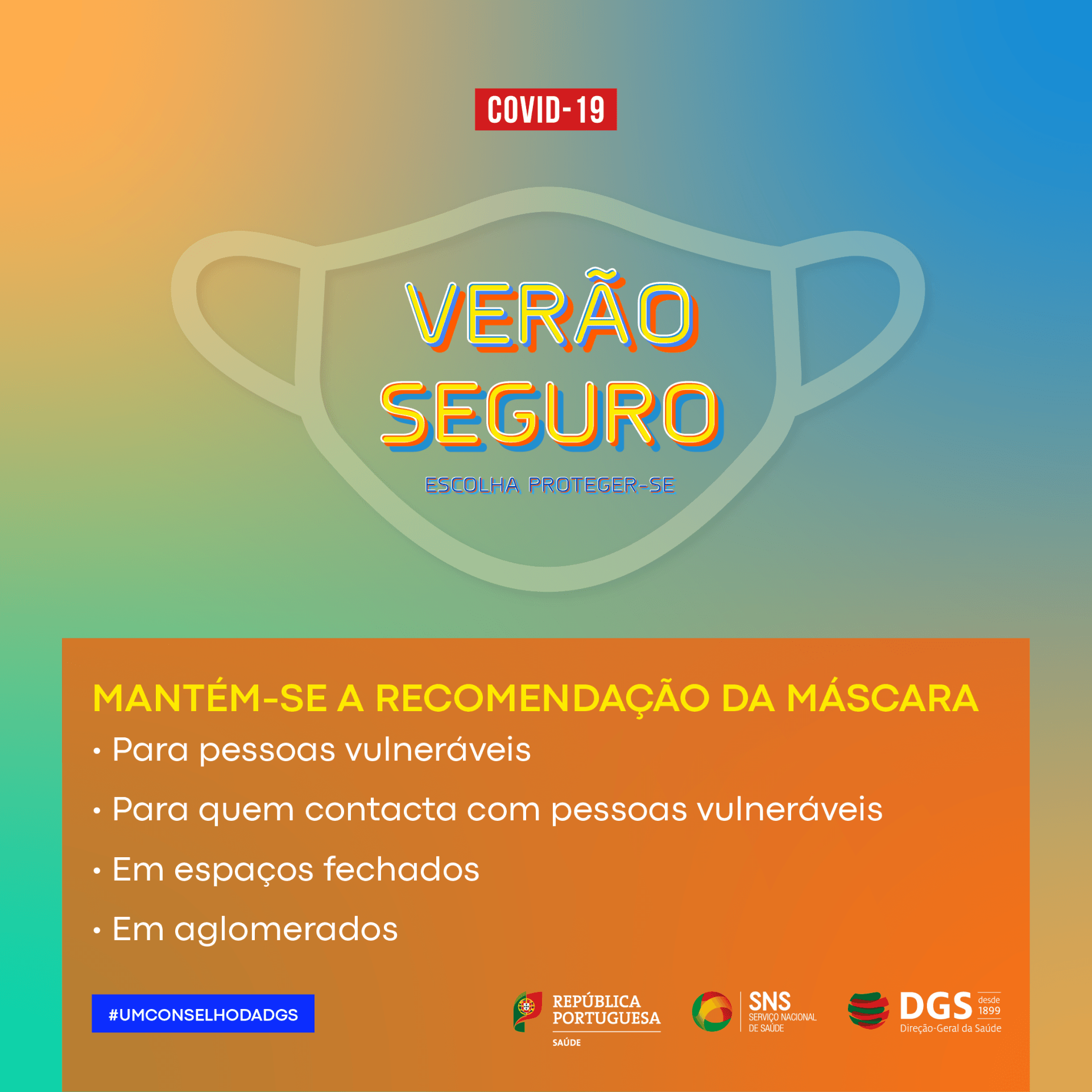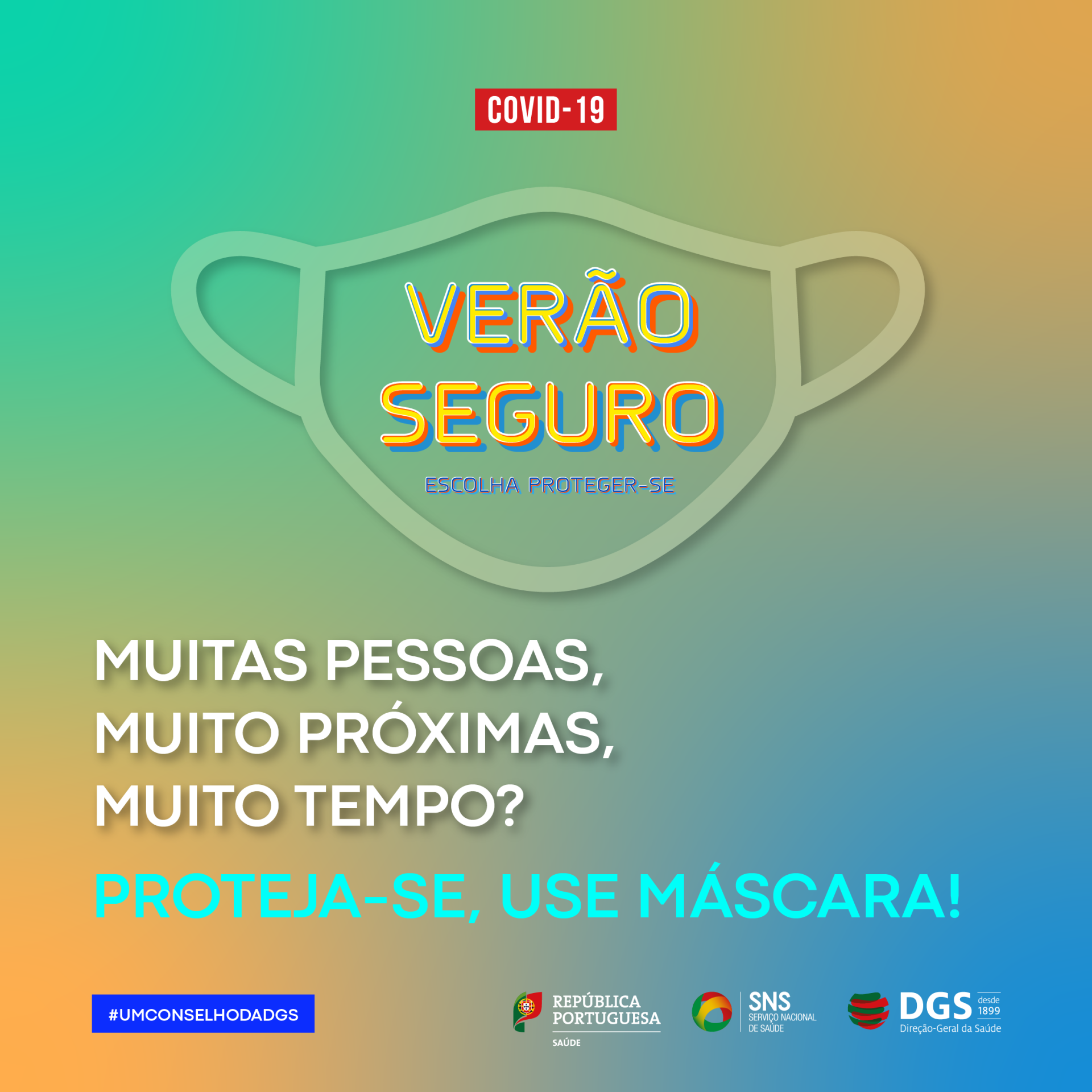 O mês de junho é o mês de arranque do período de Verão e face à atual situação epidemiológica pretendemos continuar a incentivar a adoção de comportamentos de proteção, como a utilização da máscara em situações de grandes aglomerados.